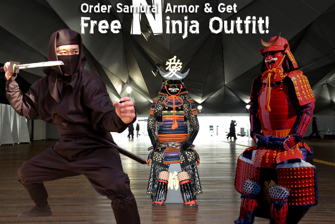 You'll get an authentic Ninja Outfit made in Iga, Japan (where the largest Ninja clans came from!) on your samurai armor purchase of $1800 or more (not including shipping) before June-30, 2014.This offer will be applied for all orders placed by 11:59pm on June-30, 2014 (US Hawaii Time). The orders must be placed via samurai-store.com or email to info@samurai-store.com.You will get an email from us with a further information on how to redeem it.